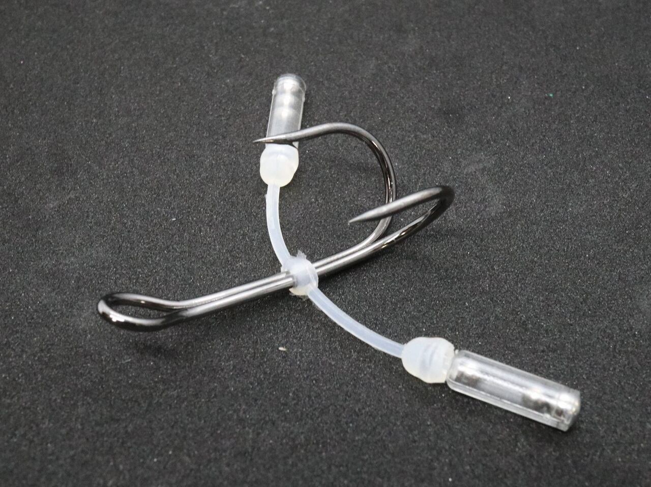 フロッグチューニング用のツインアームラトルです。ダブルフックのシャンク部に通して使います。首振りアクションは難しくなりますが、マットの上などではフロッグの存在感をアピールできます。